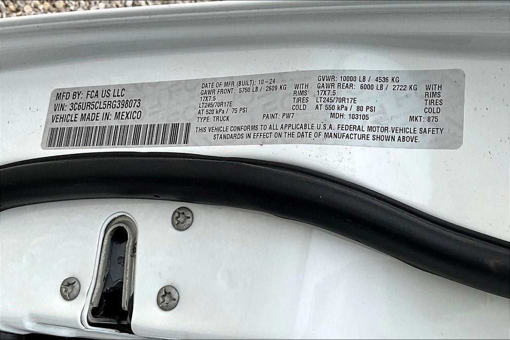 2024 Ram 2500 Tradesman 4D Crew Cab Tradesman Bright White Clearcoat 4WD 6-Speed Automatic Cummins 6.7L I6 Turbodiesel 2500 Tradesman, 4D Crew Cab, Cummins 6.7L I6 Turbodiesel, 6-Speed Automatic, 4WD, Bright White Clearcoat, Black Cloth, 2 Way Rear Headrest Seat, 4 Way Front Headrests, 40/20/40 Split Bench Seat, 6 Speakers, Active Noise Control System, Air Conditioning, AM/FM radio, Auto Level Rear Air Suspension, Black Exterior Mirrors, Blind Spot & Cross Path Detection, Brake assist, Carpet Floor Covering, Clearance Lamps, Cloth 40/20/40 Bench Seat, Compass, Electronic Stability Control, Exterior Mirrors Courtesy Lamps, Exterior Mirrors w/Heating Element, Exterior Mirrors w/Supplemental Signals, For More Info, Call 800-643-2112, Front & Rear Floor Mats, Front Armrest w/Cupholders, GPS Antenna Input, LED Tail Lamps, Manual Adjust 4-Way Driver Seat, Manual Adjust 4-Way Front Passenger Seat, Manual Folding Exterior Mirrors, Manual Telescoping Mirrors, Mirror Running Lights, Overhead airbag, Power Adjust Mirrors, Power Adjustable Convex Aux Mirrors, Power Heated Folding Telescope Mirrors, Power steering, Power windows, Quick Order Package 2HA Tradesman, Radio data system, Radio: Uconnect 3 w/5 Display, Rear Folding Seat, Rear Power Sliding Window, Rear Window Defroster, Remote USB Port - Charge Only, SiriusXM Radio Service, SiriusXM Satellite Radio, Storage Tray, Tip Start, Traction control, Tradesman Level 2 Equipment Group.