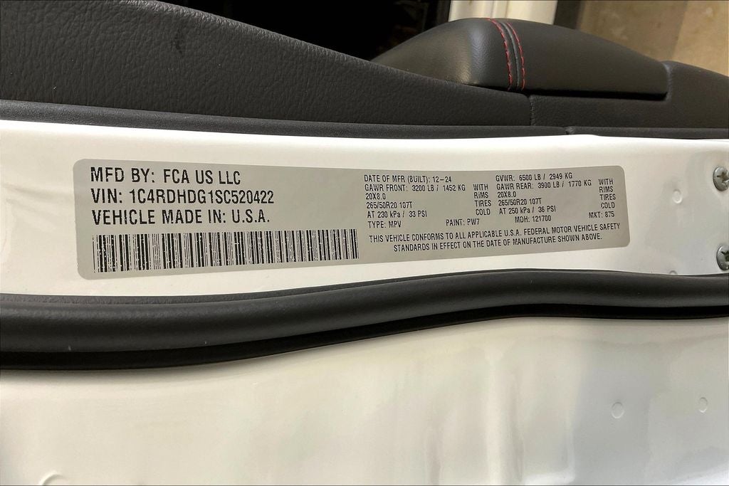 2025 Dodge Durango GT 4D Sport Utility GT White Knuckle Clearcoat RWD 8-Speed Automatic 3.6L V6 24V VVT Durango GT, 4D Sport Utility, 3.6L V6 24V VVT, 8-Speed Automatic, RWD, White Knuckle Clearcoat, Black Cloth, 3.27 Rear Axle Ratio, 3rd row seats: split-bench, 4-Wheel Disc Brakes, 6 Speakers, ABS brakes, Air Conditioning, Alloy wheels, AM/FM radio: SiriusXM w/360L, Apple CarPlay/Android Auto, Auto-dimming Rear-View mirror, Auto-leveling suspension, Automatic temperature control, Black Roof Rails, Blacktop Package, Brake assist, Compass, Driver door bin, Driver vanity mirror, Dual front impact airbags, Dual front side impact airbags, Electronic Stability Control, Emergency communication system: Dodge Connect, Four wheel independent suspension, Front anti-roll bar, Front Bucket Seats, Front dual zone A/C, Front reading lights, Fully automatic headlights, Garage door transmitter, Gloss Black Badges, Gloss Black Exterior Mirrors, GT Gloss Black Badging, Heated door mirrors, Heated front seats, Integrated Roof Rail Crossbars, Knee airbag, Leather steering wheel, Navigation System, Occupant sensing airbag, Outside temperature display, Overhead console, Panic alarm, ParkView Rear Back-Up Camera, Power door mirrors, Power driver seat, Power Liftgate, Power steering, Power windows, Quick Order Package 2BD GT, Radio data system, Radio: Uconnect 5 Nav w/10.1 Display, Rear air conditioning, Rear anti-roll bar, Rear Load Leveling Suspension, Rear reading lights, Rear window defroster, Rear window wiper, Remote keyless entry, Satin Black Dodge Tail Lamp Badge, Speed control, Speed-sensing steering, Speed-Sensitive Wipers, Split folding rear seat, Spoiler, Sport steering wheel, Steering wheel mounted audio controls, Tilt steering wheel, Traction control, Variably intermittent wipers, Wheels: 18 x 8.0 Painted Aluminum, Wheels: 20 x 8.0 Black Noise Aluminum.