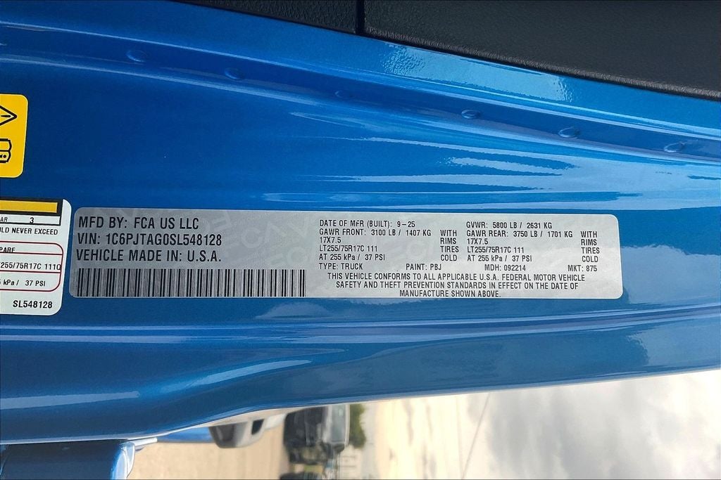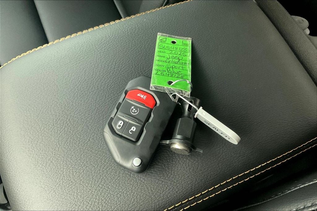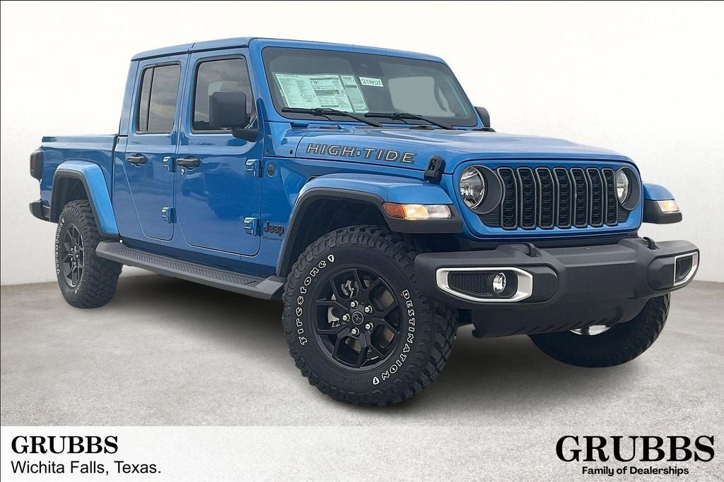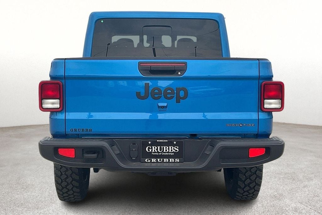 2025 Jeep Gladiator High Tide 4D Crew Cab High Tide Hydro Blue Pearlcoat 4WD 8-Speed Automatic 3.6L V6 24V VVT 110 MPH Vehicle Max Speed Calibration, 12.3 Touchscreen Display, 97 MPH Vehicle Max Speed Calibration, ABS brakes, Advanced Brake Assist, Air Conditioning, Air Conditioning w/Auto Temperature Control, Alexa Built-In, Apple CarPlay, Apple CarPlay/Android Auto, Automatic Headlamps, Body Color 3-Piece Hard Top, Body Color Fender Flares (2-Piece), Convenience Group, Corning Gorilla Glass, Daytime Running Lamp System, Deep Tint Sunscreen Windows, Emergency/Assistance Call, Freedom Panel Storage Bag, Front Door Locks 2-Door Passive Entry, Full Length Floor Console Premium Armrest, Full Speed Forward Collision Warning Plus, Hard Seat Back, Heated Front Seats, Heated Steering Wheel, High Tide, High Tide Tailgate & Hood Decals, Integrated Radar Camera Module (IRCM), Leather Wrapped Park Brake Handle, Leather Wrapped Shift Knob, Normal Duty Suspension, ParkView Rear Back-Up Camera, Power 4-Way Driver Lumbar Adjust, Power 4-Way Passenger Lumbar Adjust, Power Adjust 8-Way Driver Seat, Power Adjust 8-Way Front Passenger Seat, Power Heated Mirrors, Power steering, Power windows, Premium Door Trim Panel, Premium McKinley Trimmed Seats, Premium Wrapped Steering Wheel, Quick Order Package 24Q High Tide, Radio data system, Radio: Uconnect 5 w/12.3 Display, Rear Armrest w/Cupholder Seat, Rear Sliding Window, Rear Window Defroster, Remote keyless entry, Remote Start System, Security Alarm, Steering wheel mounted audio controls, Sun Visors w/Illuminated Vanity Mirrors, Traction control, Universal Garage Door Opener, Wheels: 17 x 7.5 Painted Black, Willys Suspension.