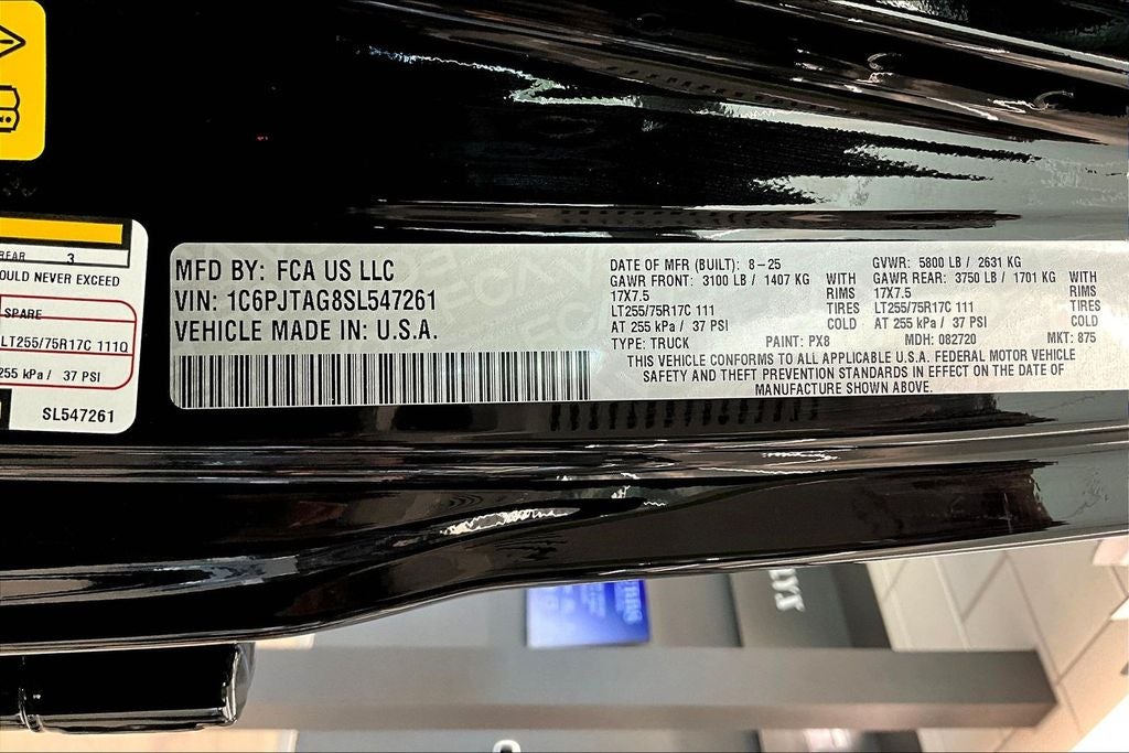 2025 Jeep Gladiator Texas Trail 4D Crew Cab Texas Trail Black Clearcoat 4WD 8-Speed Automatic 3.6L V6 24V VVT CUSTOM, LIFTED, WHEELS AND TIRES, Gladiator Texas Trail, 4D Crew Cab, 3.6L V6 24V VVT, 8-Speed Automatic, 4WD, Black Clearcoat, Black Cloth, 8 Speakers, 97 MPH Vehicle Max Speed Calibration, Advanced Brake Assist, Air Conditioning, AM/FM radio: SiriusXM, Automatic Headlamps, Body Color 3-Piece Hard Top, Body Color Fender Flares (2-Piece), Convenience Group, Corning Gorilla Glass, Daytime Running Lamp System, Deep Tint Sunscreen Windows, Emergency/Assistance Call, Freedom Panel Storage Bag, Front Door Locks 2-Door Passive Entry, Full Length Floor Console Premium Armrest, Full Speed Forward Collision Warning Plus, Hard Seat Back, Heated Front Seats, Heated Steering Wheel, Integrated Radar Camera Module (IRCM), Leather Wrapped Park Brake Handle, Leather Wrapped Shift Knob, Power 4-Way Driver Lumbar Adjust, Power 4-Way Passenger Lumbar Adjust, Power Adjust 8-Way Driver Seat, Power Adjust 8-Way Front Passenger Seat, Power Heated Mirrors, Power steering, Power windows, Premium Door Trim Panel, Premium McKinley Trimmed Seats, Premium Wrapped Steering Wheel, Quick Order Package 24J Texas Trail, Radio data system, Radio: Uconnect 5 w/12.3 Display, Rear Armrest w/Cupholder Seat, Rear Sliding Window, Rear Window Defroster, Remote keyless entry, Remote Start System, Security Alarm, Sun Visors w/Illuminated Vanity Mirrors, Texas Trail, Texas Trail Tailgate & Hood Decals, Universal Garage Door Opener, Wheels: 17 x 7.5 Painted Black, Willys Suspension.