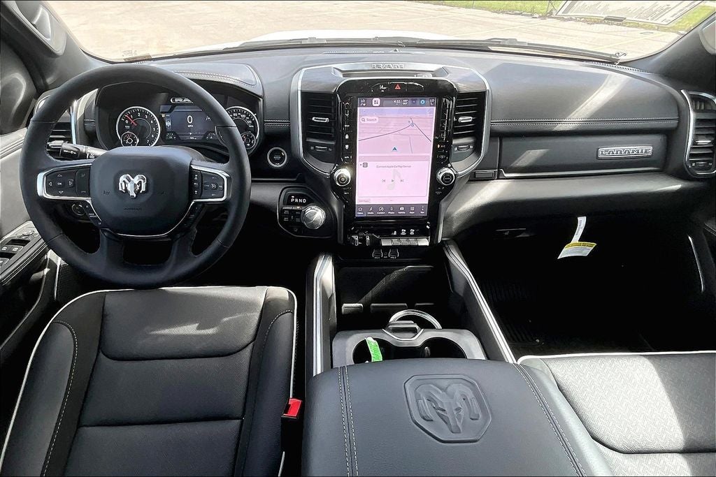 2025 Ram 1500 Laramie 4D Crew Cab Laramie Bright White Clearcoat 4WD 8-Speed Automatic 3.0L I6 10 Speakers, 33 Gallon Fuel Tank, 4 Way Front Headrests, 4-Wheel Disc Brakes, 4G LTE Wi-Fi Hot Spot, Accent Color Premium Power Mirrors, Air Conditioning, AM/FM radio: SiriusXM with 360L, Apple CarPlay, Apple CarPlay/Android Auto, Audio memory, Auto Power-Folding Mirrors, Auto-Dimming Exterior Driver Mirror, Automatic temperature control, Black Painted Exterior Mirrors Caps, Body Color Front Bumper, Body Color Rear Bumper w/Step Pads, Brake assist, Compass, Connected Travel & Traffic Services, Convex Wide-Angle Exterior Mirror Insert, Delay-off headlights, Dome Dual LED Reading Lamp, Driver Seat Memory, Dual front impact airbags, Dual-Pane Panoramic Sunroof, Electronic Stability Control, Exterior Mirrors Courtesy Lamps, Exterior Mirrors w/Heating Element, Exterior Mirrors w/Memory, Exterior Mirrors w/Supplemental Signals, Front dual zone A/C, Front fog lights, Front reading lights, Fully automatic headlights, Garage door transmitter, Google Android Auto, GPS Antenna Input, GPS Navigation, Grille Surround 3 Body Color Tex 4 Chrome, HD Radio, Heated Front Seats, Heated front seats, Heated rear seats, Heated Steering Wheel, Heated steering wheel, Illuminated entry, Integrated Voice Command w/Bluetooth®, Laramie Level 1 Equipment Group, Laramie Southwest Edition, Leather steering wheel, Leather Trim 40/20/40 Bench Seat, LED Dome/Reading Lamp, Low tire pressure warning, Memory seat, MOPAR Front & Rear Rubber Floor Mats, Navigation System, Overhead console, Panic alarm, ParkView Rear Back-Up Camera, Passenger door bin, Passenger vanity mirror, Power 2-Way Driver Lumbar Adjust, Power 2-Way Passenger Lumbar Adjust, Power Adjust 8-Way Front Passenger Seat, Power Deployable Running Boards, Power driver seat, Power passenger seat, Power steering, Power windows, Quick Order Package 21H Laramie, Radio data system, Radio: Uconnect 5 Nav w/12.0 Display, Rain Sensitive Windshield Wipers, RAM Grille Badge - Chrome, Remote keyless entry, Remote Tailgate Release, Security system, SiriusXM w/360L, Split folding rear seat, Steering wheel mounted audio controls, Tachometer, Telescoping steering wheel, Tilt steering wheel, Tow Hooks, Traction control, Trailer Brake Control, Trip computer, Ventilated Front Seats, Ventilated front seats.