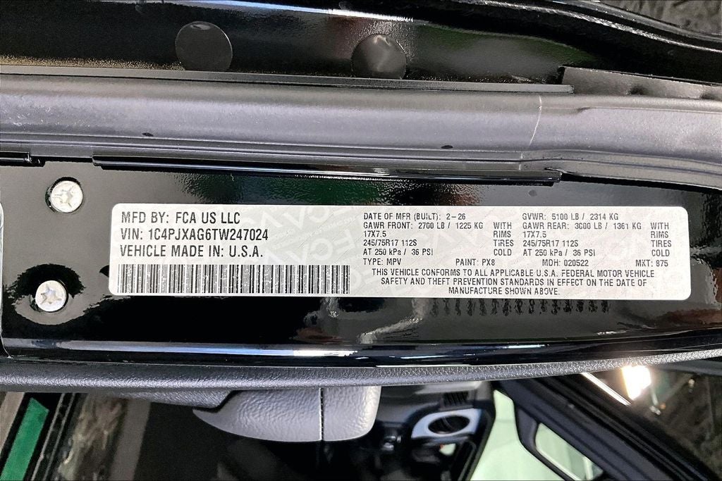 Recent Arrival! 2026 Jeep Wrangler Sport 2D Sport Utility Sport Black Clearcoat 4WD 6-Speed Manual 3.6L V6 24V VVT Wrangler Sport, 2D Sport Utility, 3.6L V6 24V VVT, 6-Speed Manual, 4WD, Black Clearcoat, Black Cloth, 12.3 Touchscreen Display, 4G LTE Wi-Fi Hot Spot, 8 Speakers, Air Conditioning, AM/FM radio: SiriusXM with 360L, Apple CarPlay, Apple CarPlay/Android Auto, Non-Lock Fuel Cap Without Discriminator, Power steering, Power windows, Quick Order Package 23B Sport, Radio data system, Radio: Uconnect 5 with 12.3 Display, Remote keyless entry, SiriusXM with 360L, Steering wheel mounted audio controls.
