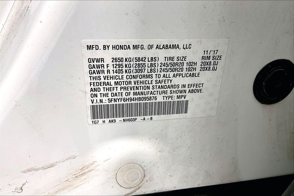 * 2017 IIHS Top Safety Pick+ (When equipped with Honda Sensing and specific headlights) * 2017 KBB.com 12 Best Family Cars * 2017 KBB.com Best Buy Awards * 2017 KBB.com 10 Best Certified Pre-Owned 3-Row SUVs Under $30,000 * 2017 KBB.com 10 Most Awarded Brands * 2017 KBB.com Brand Image Awards