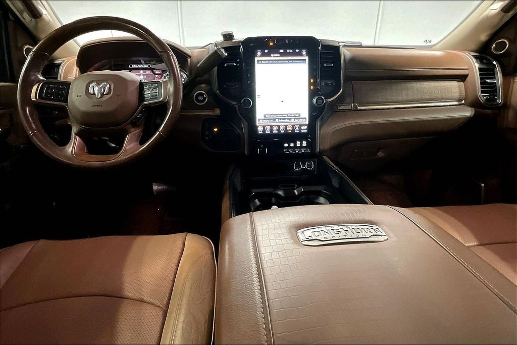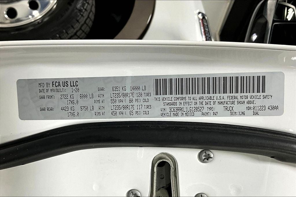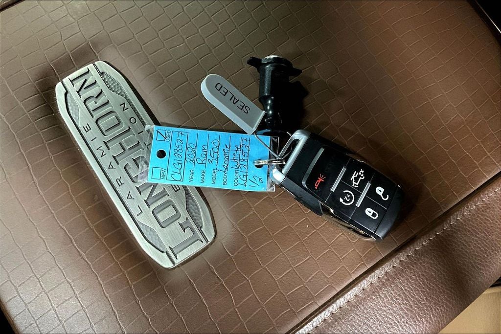 2020 Ram 3500 Laramie Longhorn Laramie Longhorn Bright White Clearcoat 4D Crew Cab 4WD 6.7L I6 Aisin 6-Speed Automatic 3500 Laramie Longhorn, 4D Crew Cab, 6.7L I6, Aisin 6-Speed Automatic, 4WD, Bright White Clearcoat, Lt Mountain Brown/Brown Leather, 12 Touchscreen Display, 17 Speaker harman kardon Premium Sound, 5th Wheel/Gooseneck Towing Prep Group, Adaptive Cruise Control w/Stop, Adaptive Steering System, Alloy wheels, AM/FM radio: SiriusXM, Apple CarPlay, Apple CarPlay/Android Auto, Audio memory, Blind Spot & Cross Path Detection, Center Hub, Compass, CTR Stop Lamp w/Cargo View Camera, Disassociated Touchscreen Display, Driver door bin, Driver vanity mirror, Front Center Armrest w/Storage, Front Seat Back Map Pockets, Full Speed Forward Collision Warning Plus, GPS Antenna Input, GPS Navigation, HD Radio, Lane Keep Assist, Longhorn Level 1 Equipment Group, Navigation System, Pedal memory, Power Deployable Running Boards, Power door mirrors, Power driver seat, Power steering, Power windows, Quick Order Package 21K Longhorn, Radio: Uconnect 12.0 w/Navigation, Ramcharger Wireless Charging Pad, Rear reading lights, Rear seat center armrest, Rear step bumper, Rear Wheelhouse Liners, Safety Group, SiriusXM Traffic Plus, SiriusXM w/360L, Surround View Camera System, Towing Technology Group, Trailer Reverse Guidance.