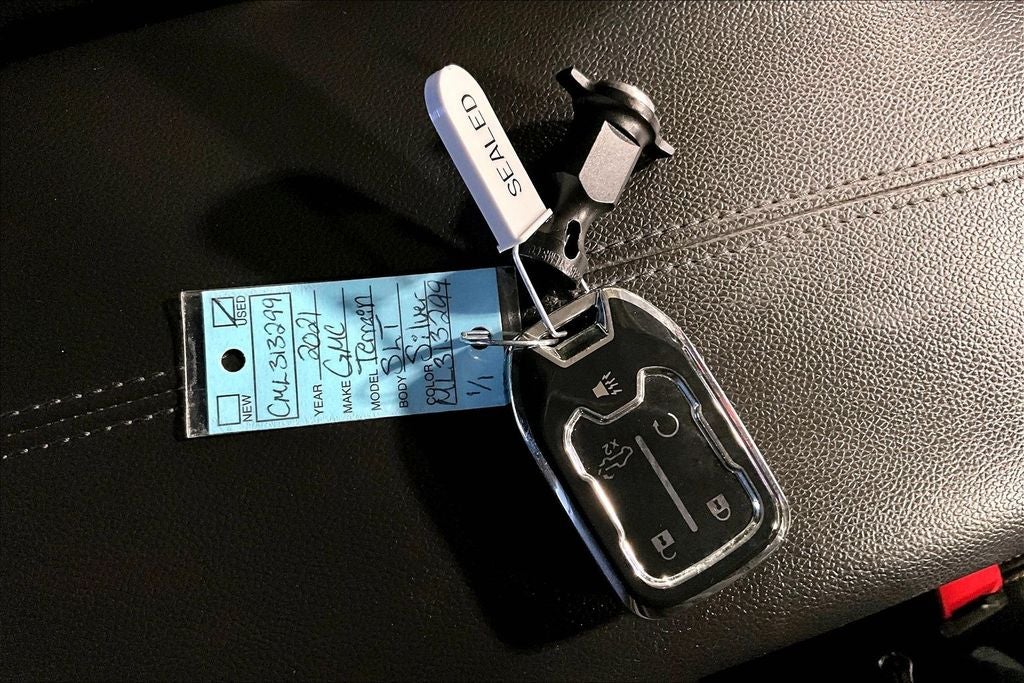 2021 GMC Terrain SLT SLT Satin Steel Metallic 4D Sport Utility FWD 1.5L DOHC 9-Speed Automatic New Feature, Apple CarPlay / Android Auto, Backup camera, Blind Spot Monitoring, Bluetooth®, Heated seats, Leather seats, Remote Start, Terrain SLT, 4D Sport Utility, 1.5L DOHC, 9-Speed Automatic, FWD, Satin Steel Metallic, Jet Black Leather, 2 USB Data Ports, 2 USB Data Ports w/SD Card Reader, 3.47 Axle Ratio, 4-Wheel Disc Brakes, 6 Speakers, 6-Speaker Audio System Feature, 8-Way Power Driver Seat Adjuster, ABS brakes, Adaptive Cruise Control, Air Conditioning, Alloy wheels, AM/FM radio: SiriusXM, Apple CarPlay/Android Auto, Auto High-beam Headlights, Auto-dimming door mirrors, Auto-dimming Rear-View mirror, Automatic temperature control, Bluetooth® For Phone, Brake assist, Bumpers: body-color, Compass, Delay-off headlights, Driver & Front Passenger Heated Seats, Driver door bin, Driver vanity mirror, Dual front impact airbags, Dual front side impact airbags, Electronic Stability Control, Emergency communication system: OnStar and GMC connected services capable, Exterior Parking Camera Rear, Four wheel independent suspension, Front anti-roll bar, Front Bucket Seats, Front Center Armrest, Front dual zone A/C, Front fog lights, Front reading lights, Fully automatic headlights, Garage door transmitter, GMC Pro Safety Plus, Heated door mirrors, Heated front seats, Heated steering wheel, High-Intensity Discharge Headlights, Illuminated entry, Lane Change Alert w/Side Blind Zone Alert, License Plate Front Mounting Package, Low tire pressure warning, Memory seat, Occupant sensing airbag, Outside temperature display, Overhead airbag, Overhead console, Panic alarm, Passenger door bin, Passenger vanity mirror, Perforated Leather-Appointed Seat Trim, Power door mirrors, Power Driver Lumbar Control, Power driver seat, Power Liftgate, Power passenger seat, Power steering, Power windows, Preferred Equipment Group 4SA, Radio data system, Radio: GMC Infotainment Audio System w/8 Display, Rear anti-roll bar, Rear Cross-Traffic Alert, Rear Park Assist, Rear seat center armrest, Rear window defroster, Rear window wiper, Remote keyless entry, Roof rack: rails only, Safety Alert Seat, Security system, SiriusXM Radio, Speed control, Speed-sensing steering, Split folding rear seat, Spoiler, Steering wheel mounted audio controls, Tachometer, Telescoping steering wheel, Tilt steering wheel, Traction control, Trip computer, Turn signal indicator mirrors, Variably intermittent wipers, Wheels: 18 x 7 Machined Aluminum w/Gray Accents.