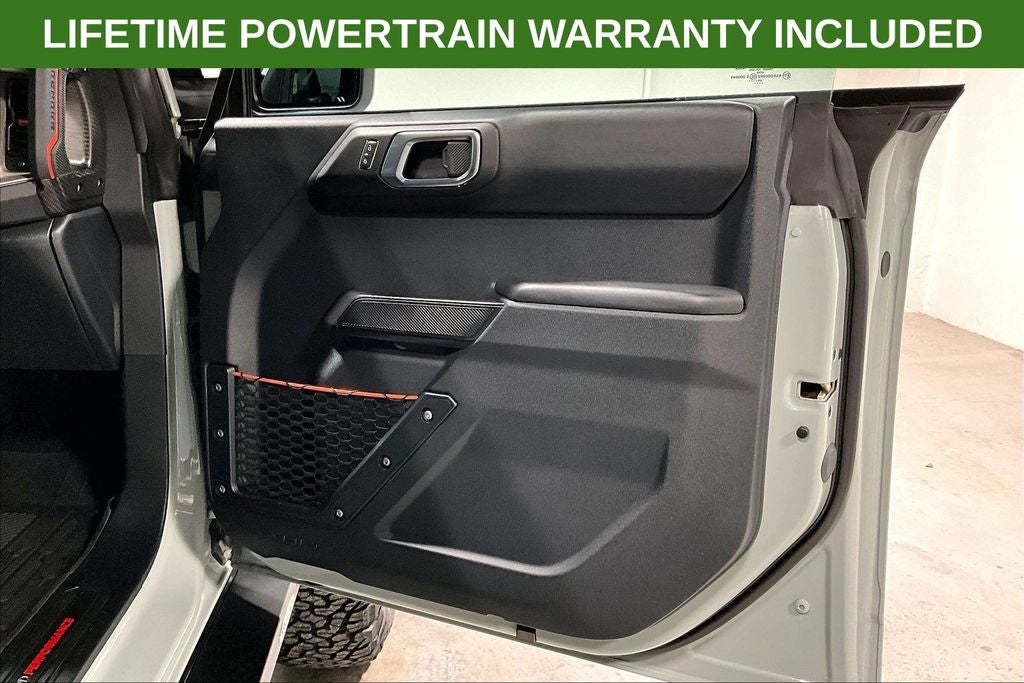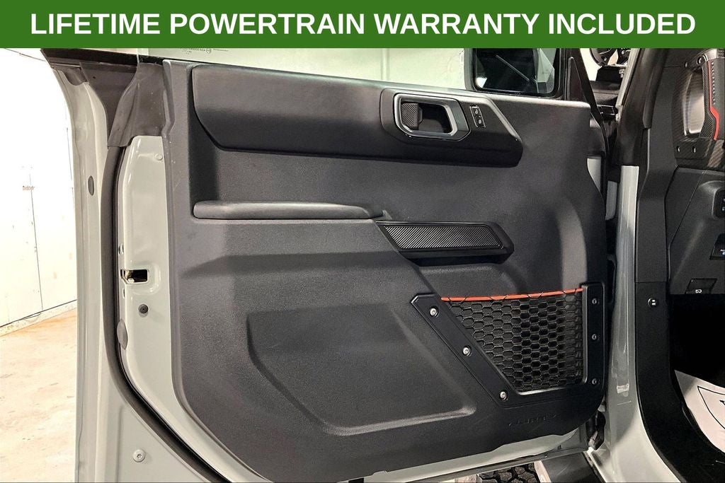 2024 Ford Bronco Raptor Raptor Cactus Gray 4D Sport Utility 4WD 3.0L EcoBoost V6 10-Speed Automatic 1 Owner, New Feature, Apple CarPlay / Android Auto, Backup camera, Blind Spot Monitoring, Bluetooth®, Heated seats, Leather seats, Remote Start, Bronco Raptor, 4D Sport Utility, 3.0L EcoBoost V6, 10-Speed Automatic, 4WD, Cactus Gray, Black Onyx w/Leather-Trimmed/Vinyl Bucket Seats, 10 Speakers, 4-Wheel Disc Brakes, ABS brakes, Air Conditioning, Alloy wheels, AM/FM radio: SiriusXM with 360L, Auto High-beam Headlights, Auto-dimming Rear-View mirror, Automatic temperature control, Brake assist, Compass, Connected Navigation, Convertible HardTop, Convertible roof lining, Delay-off headlights, Driver door bin, Driver vanity mirror, Dual front impact airbags, Dual front side impact airbags, Electronic Stability Control, Emergency communication system: 911 Assist, Exterior Parking Camera Rear, Front anti-roll bar, Front Bucket Seats, Front Center Armrest, Front dual zone A/C, Front fog lights, Front reading lights, Front wheel independent suspension, Fully automatic headlights, Garage door transmitter, Glass rear window, Heated door mirrors, Heated front seats, Heated steering wheel, Illuminated entry, Integrated roll-over protection, Leather Shift Knob, Low tire pressure warning, Marine Grade Vinyl Bucket Seats, Navigation system: Connected Navigation, Occupant sensing airbag, Outside temperature display, Overhead airbag, Overhead console, Panic alarm, Passenger door bin, Passenger vanity mirror, Power door mirrors, Power steering, Power windows, Radio data system, Radio: B&O Sound System by Bang & Olufsen, Rear anti-roll bar, Rear seat center armrest, Rear window defroster, Rear window wiper, Remote keyless entry, Security system, SiriusXM Radio w/360L, Speed control, Split folding rear seat, Steering wheel mounted audio controls, SYNC 4, Tachometer, Telescoping steering wheel, Tilt steering wheel, Traction control, Trip computer, Turn signal indicator mirrors, Variably intermittent wipers, Voltmeter, Wheels: 17 Black High Gloss-Painted Aluminum.