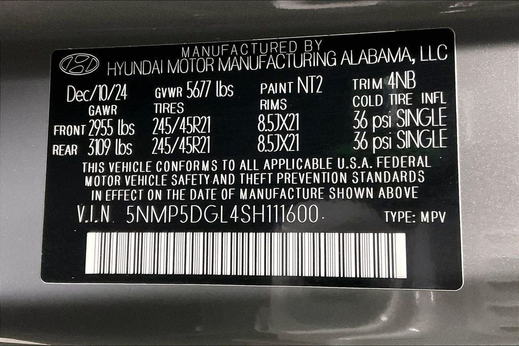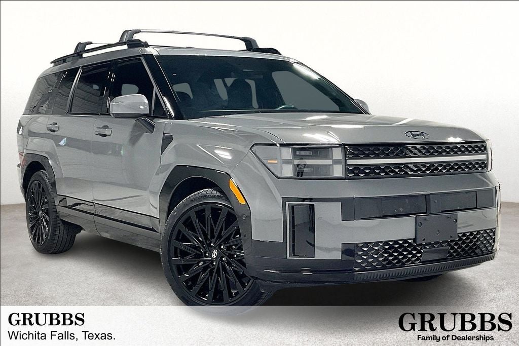 New Price! 2025 Hyundai Santa Fe Calligraphy Calligraphy Hampton Gray 4D Sport Utility AWD 2.5L I4 Shiftronic 1 Owner, New Feature, Apple CarPlay / Android Auto, Backup camera, Blind Spot Monitoring, Bluetooth®, Heated seats, Leather seats, Navigation system, Remote Start, Sunroof / Moonroof, Third-row seating, Santa Fe Calligraphy, 4D Sport Utility, 2.5L I4, Shiftronic, AWD, Hampton Gray, Black Leather, 12 Speakers, 3rd row seats: bench, 4-Wheel Disc Brakes, ABS brakes, Air Conditioning, Alloy wheels, AM/FM radio: SiriusXM, Apple CarPlay & Android Auto, Auto High-beam Headlights, Auto-dimming Rear-View mirror, Automatic temperature control, Brake assist, Bumpers: body-color, Cargo Net, Cargo Tray, Carpeted Floor Mats, Cross Rails, Delay-off headlights, Driver door bin, Driver vanity mirror, Dual front impact airbags, Dual front side impact airbags, Electronic Stability Control, Emergency communication system, Exterior Parking Camera Rear, First Aid Kit, Four wheel independent suspension, Front anti-roll bar, Front Bucket Seats, Front Center Armrest, Front dual zone A/C, Front reading lights, Fully automatic headlights, Garage door transmitter: HomeLink, Heads-Up Display, Heated & Ventilated Front Bucket Seats, Heated door mirrors, Heated front seats, Heated rear seats, Heated steering wheel, Illuminated entry, Knee airbag, Leather steering wheel, Low tire pressure warning, Memory seat, Navigation System, Occupant sensing airbag, Option Group 01, Outside temperature display, Overhead airbag, Overhead console, Panic alarm, Passenger door bin, Passenger vanity mirror, Power door mirrors, Power driver seat, Power Liftgate, Power moonroof, Power passenger seat, Power steering, Power windows, Premium Nappa Leather Seat Trim, Radio: AM/FM/HD Bose Premium Audio System, Rain sensing wipers, Rear anti-roll bar, Rear side impact airbag, Rear window defroster, Rear window wiper, Remote keyless entry, Security system, Speed control, Speed-sensing steering, Split folding rear seat, Spoiler, Steering wheel mounted audio controls, Tachometer, Telescoping steering wheel, Tilt steering wheel, Traction control, Transverse Panel, Trip computer, Turn signal indicator mirrors, Variably intermittent wipers, Ventilated front seats, Wheels: 21 x 8.5J Unique Dark Finish Alloy.