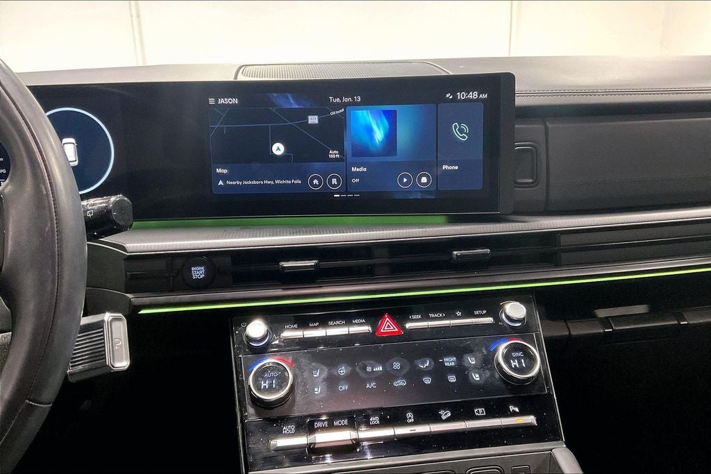 - Radio: AM/FM/HD Bose Premium Audio System -inc: 12 speakers including subwoofer, external amplifier, 12.3" wide touchscreen, Apple CarPlay and Android Auto, Bluetooth® hands-free w/wireless audio streaming, dynamic voice recognition, USB connectivity, SiriusXM, Blue Link+ connected car system, over-the-air updating capability, navigation system including traffic flow w/incident data via HD Radio (HERE) and rear seat quiet mode