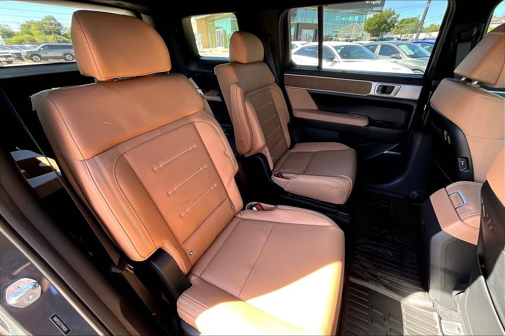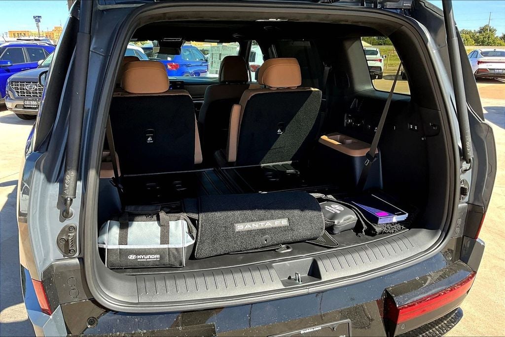 The Santa Fe's spacious and luxuriously appointed interior is a true sanctuary on wheels. Quilted Premium Nappa Leather Seat Trim and Heated and Ventilated Front Bucket Seats ensure unparalleled comfort, while the Power Liftgate and Cargo Tray make loading and unloading a breeze. The Power Moonroof and Panoramic Sunroof flood the cabin with natural light, creating a bright and airy atmosphere.