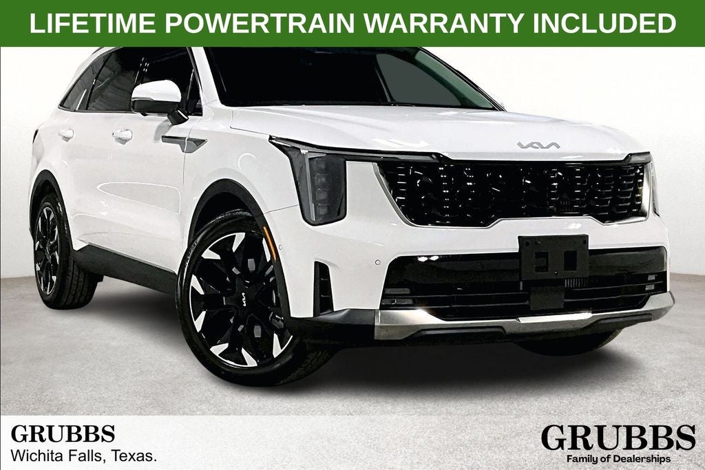New Price! 2026 Kia Sorento SX SX Glacial White Pearl 4D Sport Utility FWD 2.5L I4 DGI Turbocharged DOHC 16V LEV3-SULEV30 281hp 8 Speed Dual Clutch 1 Owner, New Feature, Apple CarPlay / Android Auto, Backup camera, Bluetooth®, Heated seats, Remote Start, Third-row seating, Sorento SX, 4D Sport Utility, 2.5L I4 DGI Turbocharged DOHC 16V LEV3-SULEV30 281hp, 8 Speed Dual Clutch, FWD, Glacial White Pearl, Black Artificial Leather, 12 Speakers, 3rd row seats: split-bench, 4-Wheel Disc Brakes, ABS brakes, Air Conditioning, All Weather Floor Mats, Alloy wheels, AM/FM radio: SiriusXM, Apple CarPlay & Android Auto, Auto High-beam Headlights, Auto-dimming Rear-View mirror, Automatic temperature control, Brake assist, Bumpers: body-color, Delay-off headlights, Driver door bin, Driver vanity mirror, Dual front impact airbags, Dual front side impact airbags, Electronic Stability Control, Emergency communication system: 911 Connect, Exterior Parking Camera Rear, Four wheel independent suspension, Front anti-roll bar, Front Bucket Seats, Front Center Armrest, Front dual zone A/C, Front fog lights, Front reading lights, Fully automatic headlights, Garage door transmitter: HomeLink, Heated and Ventilated Front Bucket Seats, Heated door mirrors, Heated front seats, Heated steering wheel, Illuminated entry, Knee airbag, Leather Shift Knob, Leather steering wheel, Low tire pressure warning, Navigation System, Occupant sensing airbag, Outside temperature display, Overhead airbag, Overhead console, Panic alarm, Passenger door bin, Passenger vanity mirror, Power door mirrors, Power driver seat, Power Liftgate, Power moonroof, Power passenger seat, Power steering, Power windows, Radio data system, Radio: AM/FM Bose Premium Audio System, Rain sensing wipers, Rear anti-roll bar, Rear reading lights, Rear side impact airbag, Rear window defroster, Rear window wiper, Remote keyless entry, Security system, Speed control, Speed-sensing steering, Split folding rear seat, Spoiler, Steering wheel mounted audio controls, SynTex Artificial Leather Seat Trim, Tachometer, Telescoping steering wheel, Tilt steering wheel, Traction control, Trip computer, Turn signal indicator mirrors, Variably intermittent wipers, Ventilated front seats, Wheels: 20 Machine-Finished Gloss Black Alloy.